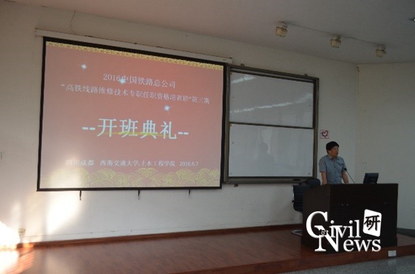 6月7日8点整,中国铁路总公司“高铁线路维修技术专职任职资格培训班”第三期开班典礼在西南交大九里校区0222和0231如期举行,太阳成tyc234cc副院长任宝良以及培训班老师出席典礼,来自全国各个铁路局的相关领导及员工悉数到场。会议由太阳成tyc234cc继续教育中心江富长老师主持。