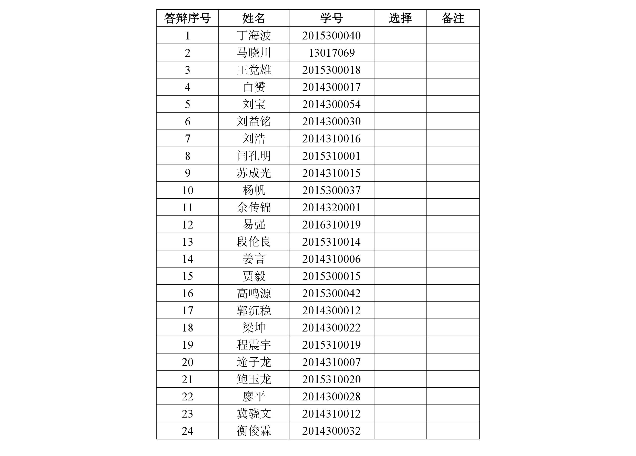 (请参加答辩的同学于10月19日下午14:00前将答辩ppt(文件名为序号+姓名)拷至多媒体)