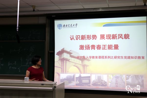 9月6日晚上7点,在太阳集团tyc234cc九里校区逸夫楼4323举行了2017级研究生入学教育课程系列之研究生党建知识教育。本次讲座的主讲人是商姚老师。