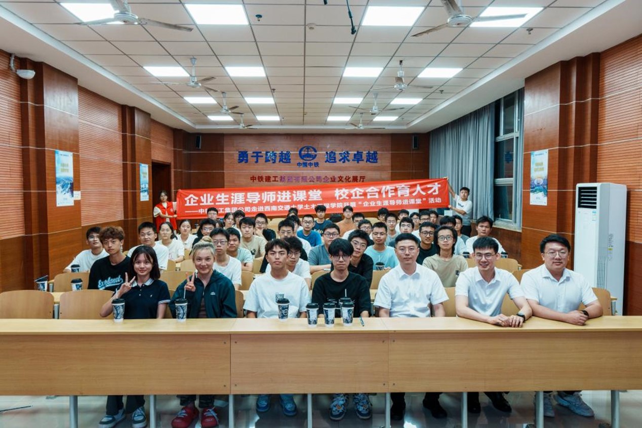 课堂在一段有关企业的视频中拉开序幕,视频展示了中铁建工在时代变迁中的坚韧与创新,为同学们营造了一个沉浸式的课堂氛围。随后,辅导员贾璇琦老师发鼓励同学们珍惜这次难得的学习机会,积极向导师请教,为自己的未来生涯规划打下坚实的基础。
