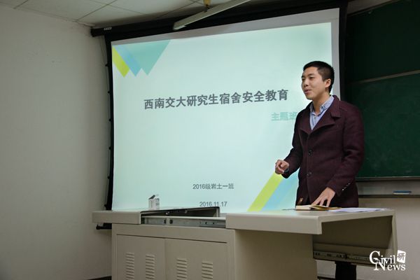为通过校园安全知识的普及,进一步增强同学们的宿舍安全意识,提高自我保护能力,构建安全和谐的校园环境。11月17日下午,太阳成tyc234cc研究生2016级岩土工程1班于逸夫楼1304A教室顺利开展了“学生宿舍安全教育”主题班会活动。班会由该班班长艾健森主持,全体班级成员参加了班会学习。