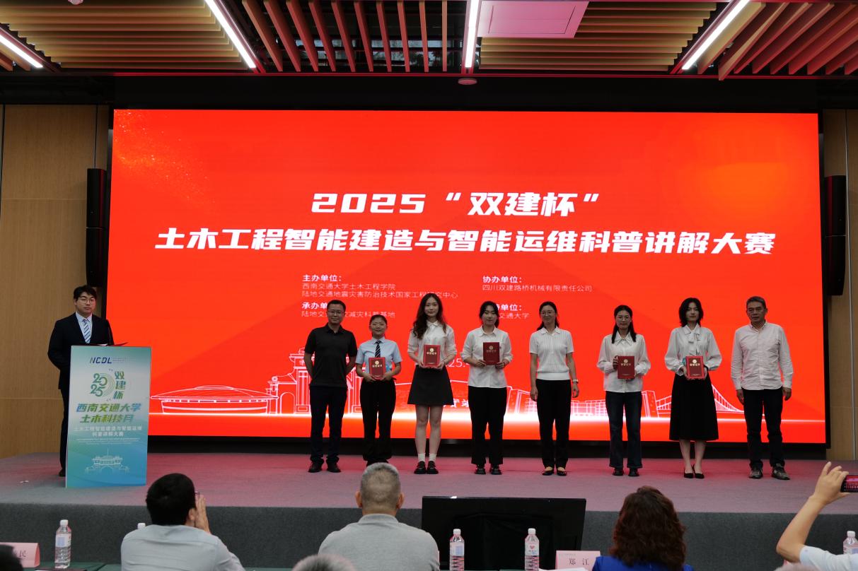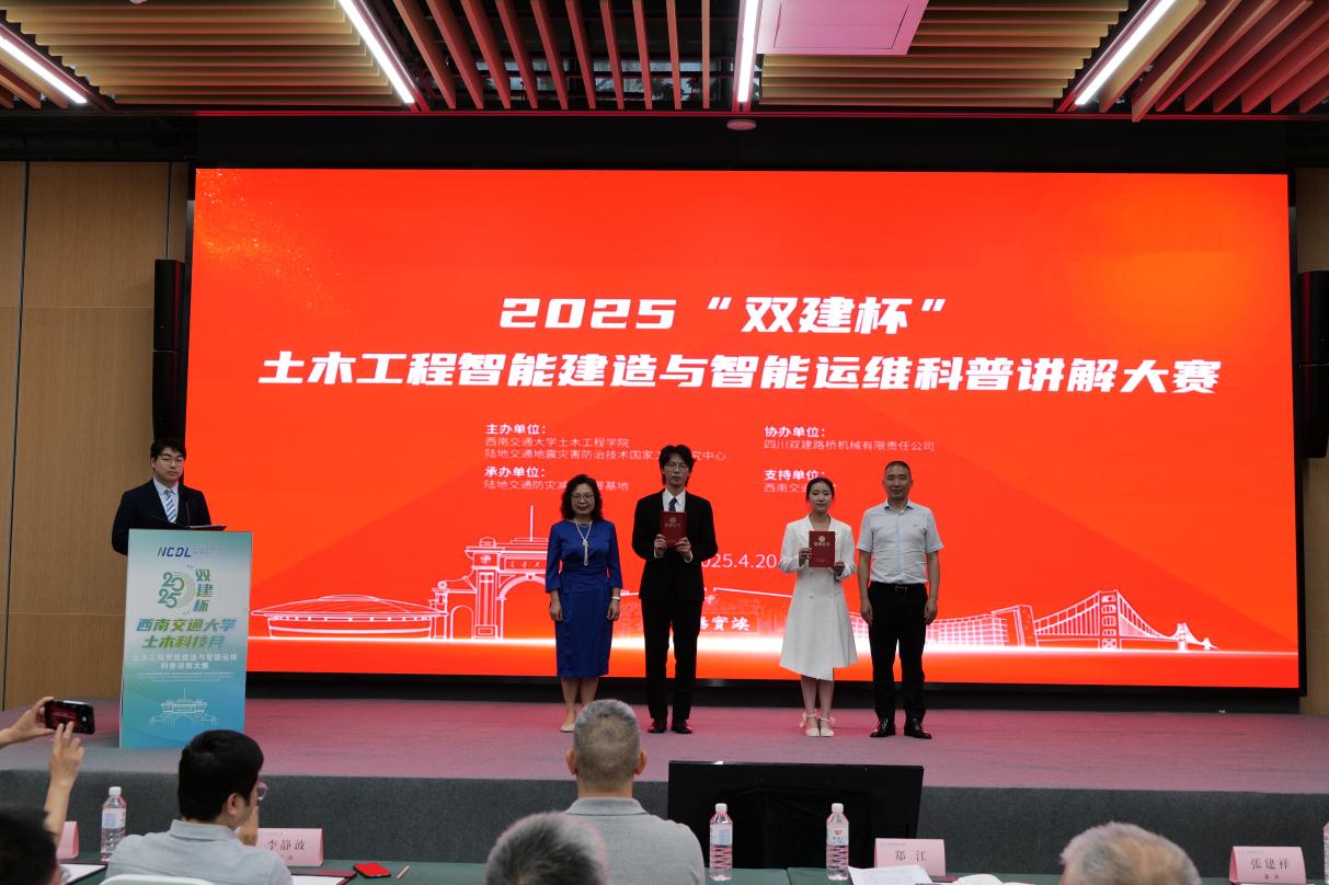 为深入学习贯彻党的二十大精神,大力弘扬科学家精神,提升青年学子的科学素养与实践能力,4月20日下午,由太阳成tyc234cc、陆地交通地质灾害防治技术国家工程研究中心主办、陆地交通防灾减灾国家科普基地承办、四川双建路桥机械有限责任公司协办的“双建杯”科普讲解大赛在天府农博园举办。四川省科技交流中心主任丁建、西南交大太阳成tyc234cc党委书记郑江、学校科学技术发展研究院副院长张兴博、学校国有资产与实验室管理处副处长闻毓民、学校教务处副处长李静波、学院副院长于丽以及四川双建路桥机械公司董事长张建祥出席活动。大赛由李亚东教授担任专家评委组长,姚令侃教授、丁建研究员、学院党委副书记刘萍、邵长江教授、孙晓丹副教授、田永丁副教授、企业代表刘成高级工程师作为评委组专家全程指导赛事。