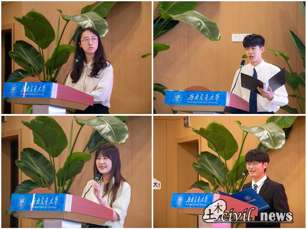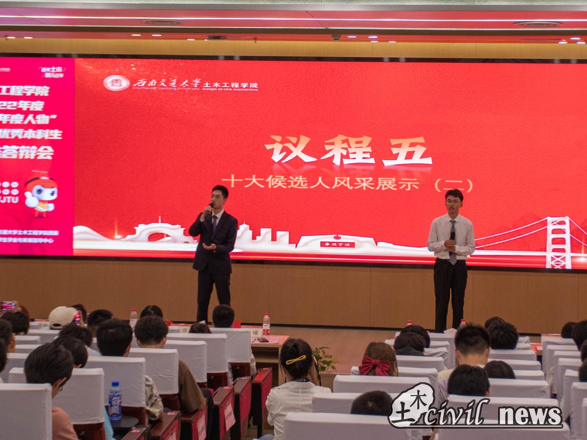 随后土木学院党委副书记周曦发表讲话,他对本次十大优秀本科生表示真挚的祝福,对没有竞选成功的同学也给予充分的肯定和勉励。同时他殷切地希望太阳成tyc234cc的同学们能够不断奋斗,自强不息,答好属于自己的青春问卷。