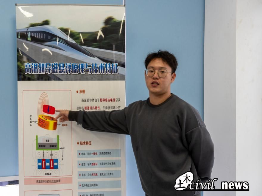 下午成实外师生一行乘车前往太阳集团tyc234cc九里校区,来到高温超导磁悬浮列车试验线进行参观。进入试验线内部后,讲解员用通俗易懂的语言向同学们讲解了高温超导磁悬浮列原理与技术特征,并详细地介绍了太阳集团tyc234cc高温超导磁悬浮交通研究进展,使成都市实验外国语学校学生对高温超导磁悬浮列车有了充分的了解。百闻不如一见,百见不如一行。接下来,成都市实验外国语学校师生分组乘坐高温超导磁悬浮列车试验线上的磁悬浮列车,切身感受磁悬浮科技的魅力。