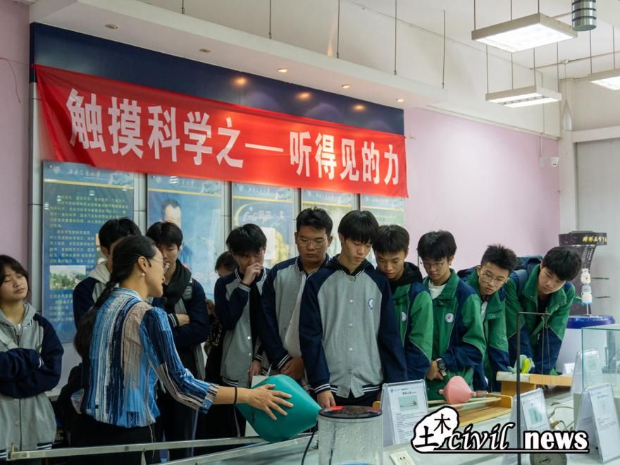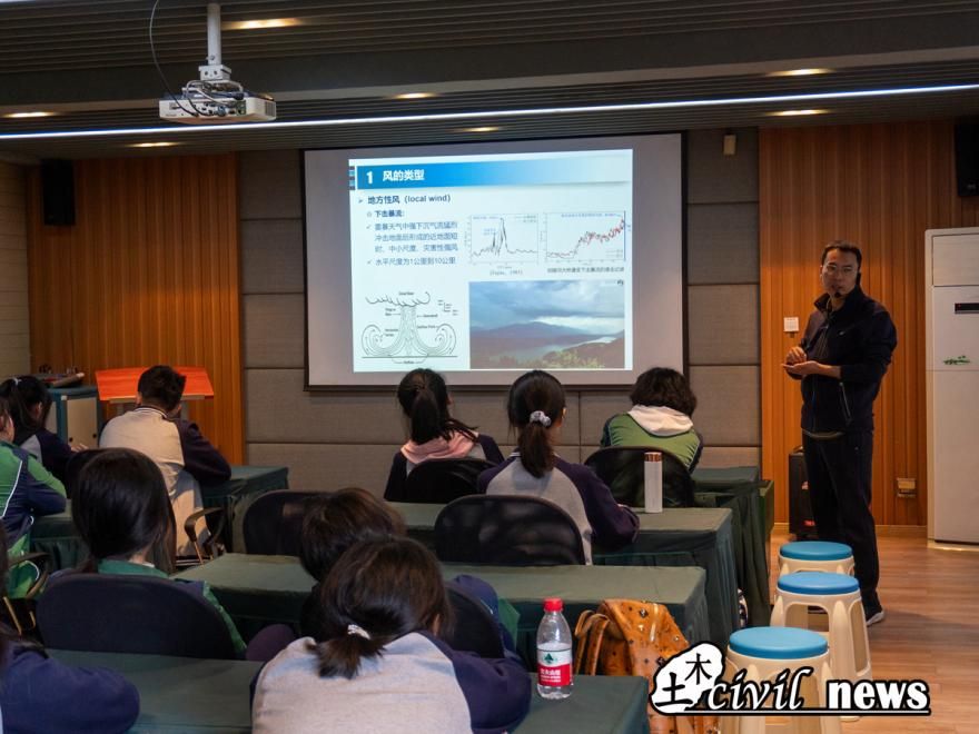 随后,学生们来到了犀浦校区的最后一个参观点,即风工程实验室。在讲座环节,同学们初步了解了风的成因、类型、风致灾害,并对实验室以风洞为依托的科研条件进行了介绍。接着,同学们进入风洞,在三级风下,感受到了比此刻窗外秋风更刺骨的寒意,纷纷缩着脖子,脸上却是因体验了新奇事物而绽开的笑容。