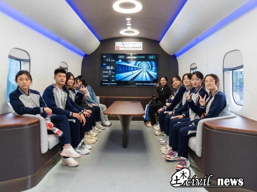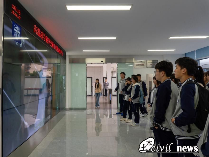 参观了高温超导磁悬浮列车试验线之后,成都市实验外国语学校全体师生前往轨道交通运载系统全国重点实验室进行参观。讲解老师重点介绍了高速铁路线路结构动态性能试验台,该试验台是目前世界上高铁轨道种类最齐全的全尺寸试验台可用于研究轨道结构部件损伤劣化机理、轨道结构动力学性能等等。讲解老师用生动形象的语言讲解机械性运转的机器,同学们边听边看,一路上有问有答,有说有笑。