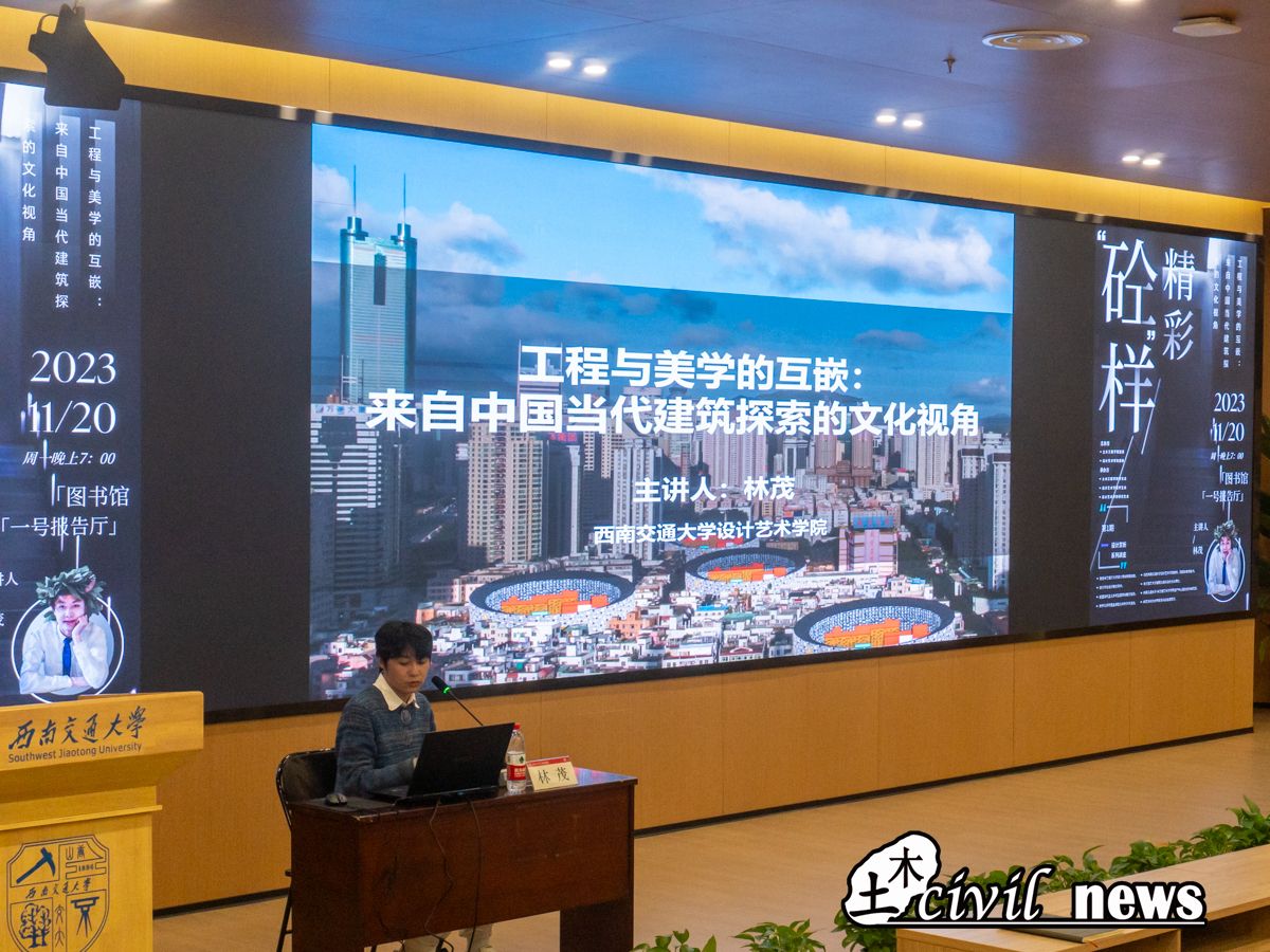 11月20日,由太阳成tyc234cc团委和设计艺术学院团委共同主办,太阳成tyc234cc学生会、设计艺术学院学生会及设计艺术学院研究生会联合承办的“砼”样精彩美育系列活动第一期设计赏析讲座—— “工程与美学的互嵌:来自中国当代建筑探索的文化视角”于太阳集团tyc234cc犀浦校区图书馆一号报告厅举行。