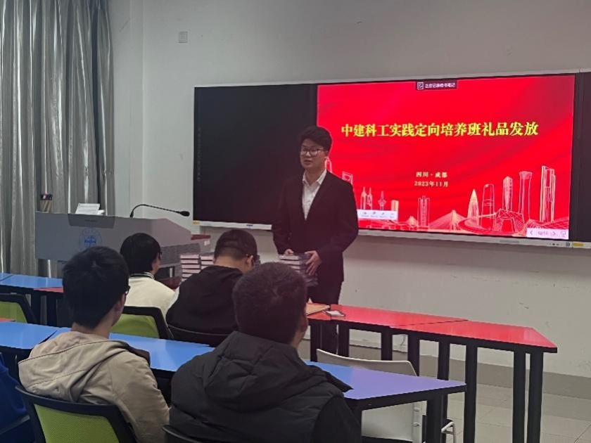 在同学们热烈的掌声中,中建科工实践定向培养班开班活动顺利落幕。企业生涯导师们为同学们带来了中建科工集团有限公司精心定制的暖心礼物:新年日程本。厚厚的本子,寄托了导师们的殷切期待,承载着未来无限的希望。随着镜头的喀嚓声,本次同学们与企业生涯导师交流的美好瞬间也在此定格,希望同学们未来能够不断提升个人本领,打好专业基础,在导师们的帮助下树立良好的就业观念。