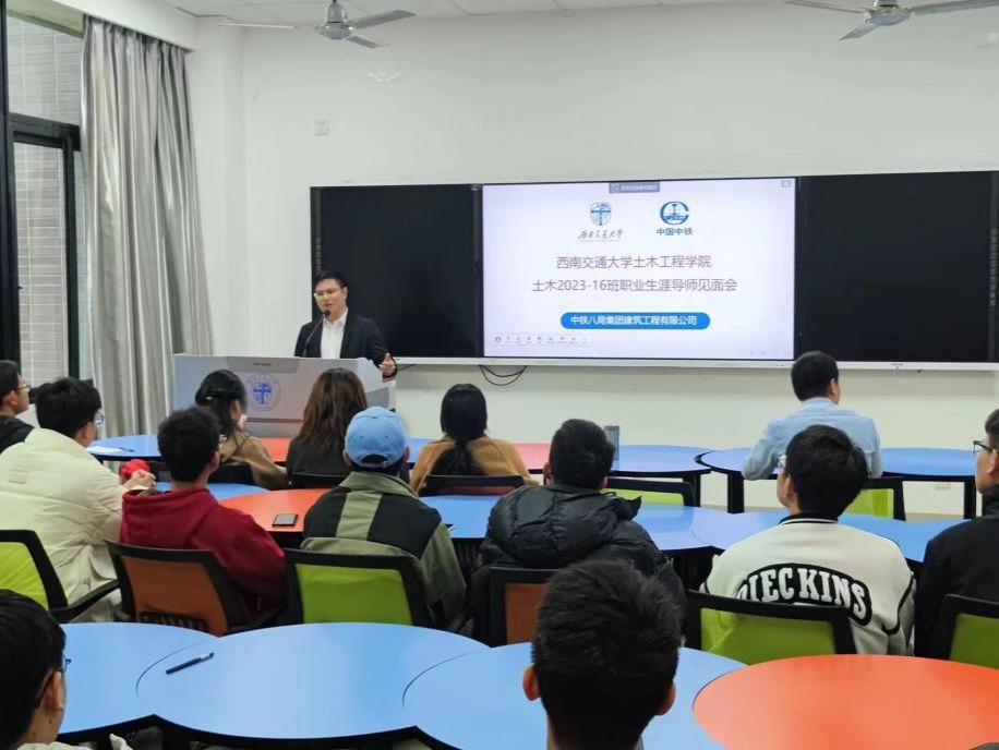12月1日,太阳成tyc234cc土木2023级16班企业生涯导师、学院青年讲师团成员马云富和刘凌龙在太阳集团tyc234cc犀浦校区四号教学楼X4137教室开展了企业生涯导师见面会。此次见面会旨在让同学们进一步了解当前就业形势,并且对中铁八局建筑公司有了进一步的深刻了解,提高了对土木专业的认知水平。