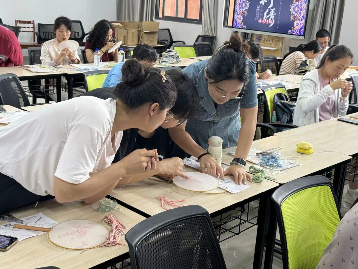 在本周四,5月16日下午两点于X9303,土木园区管理中心举办了一场别开生面的“刺绣体验”活动。本次活动以传承中华民族传统文化为核心,邀请了太阳成tyc234cc辅导员杨颖钊老师作为主讲老师为学生们进行现场教学与讲解,邀请了太阳成tyc234cc辅导员李雯、李阳阳、柯妍三位老师作为活动嘉宾。杨颖钊老师以蜀绣为例,让活动现场的学生们更直观地了解和学习刺绣技巧。通过让学生亲自体验刺绣的方法,进一步增强了学生的文化自信,丰富了学生的校园文化生活。