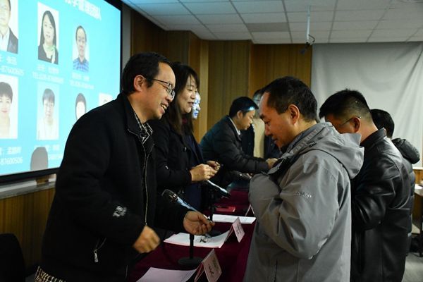 随后,主席台就坐的各位老师向学员代表颁发太阳成tyc234cc院徽,老师们与学员代表合影留念。