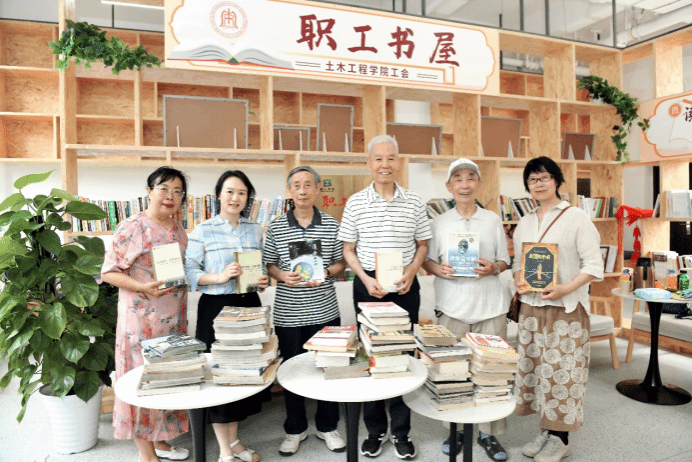 活动最后,举行了捐赠书籍仪式,由学院离退休第二党支部书记徐惠芬老师代表离退休教职工向学院职工书屋捐赠图书。