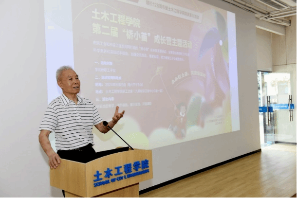 活动伊始,刘学信教授首先致辞。他表达了学校关工委对教职工子女的亲切问候和殷切期望。每一位少年儿童都是茁壮成长的青葱小苗,他们终将架设自己的桥梁连通未来。刘学信教授祝愿每一位桥小苗能在活动中激发出探索知识的乐趣,同时希望更多的人能够积极参与其中,让“桥小苗”学科知识成长营成为土木工程学院乃至学校的一道靓丽的风景线。