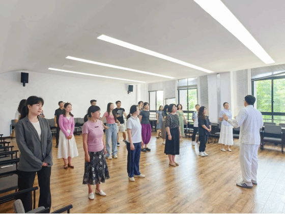 最后在谭老师耐心细致的指导下,大家认真学习了八段锦功法的动作要领和调息方法充分展示了教职工们朝气蓬勃、积极向上的精神面貌。