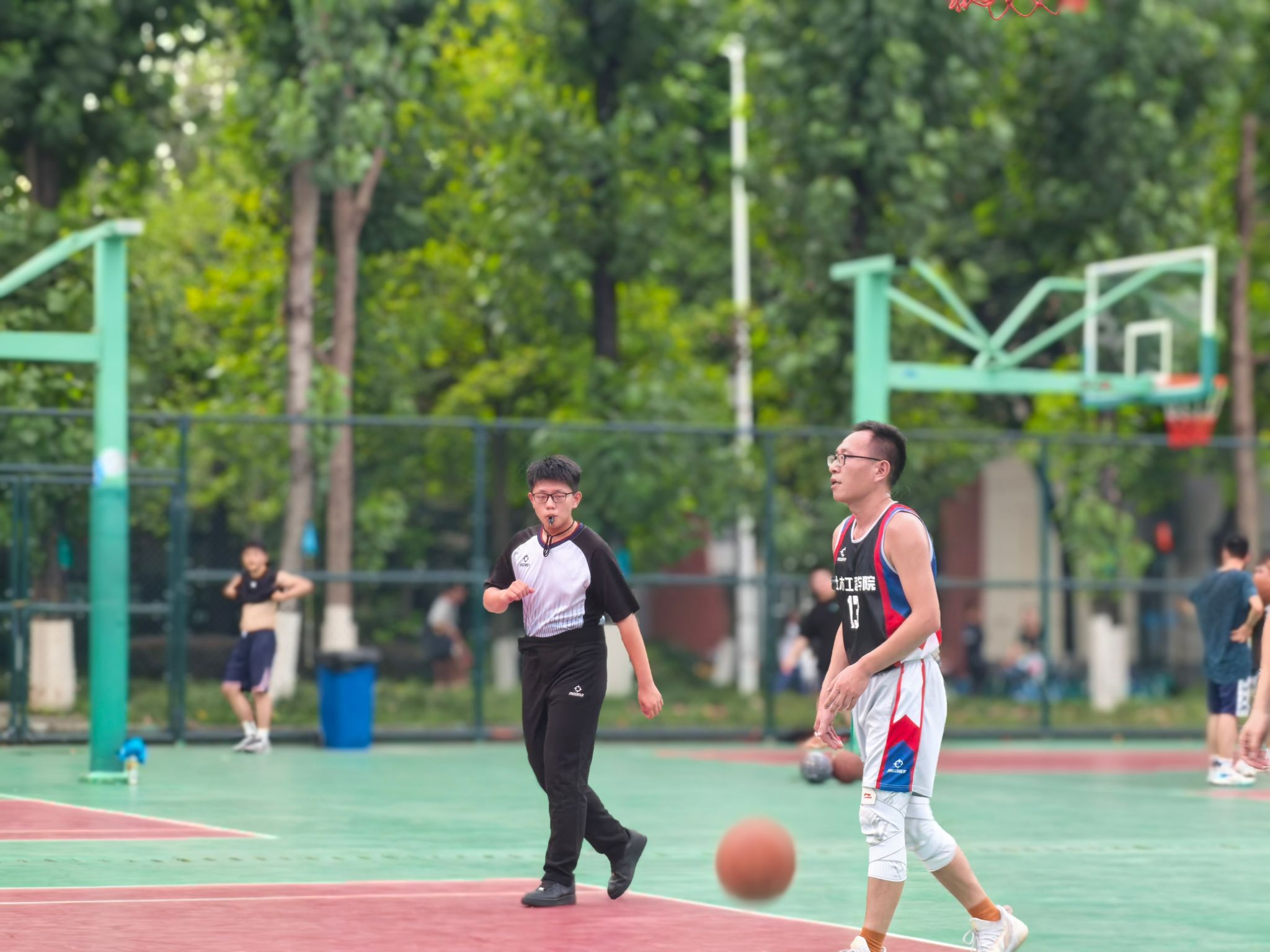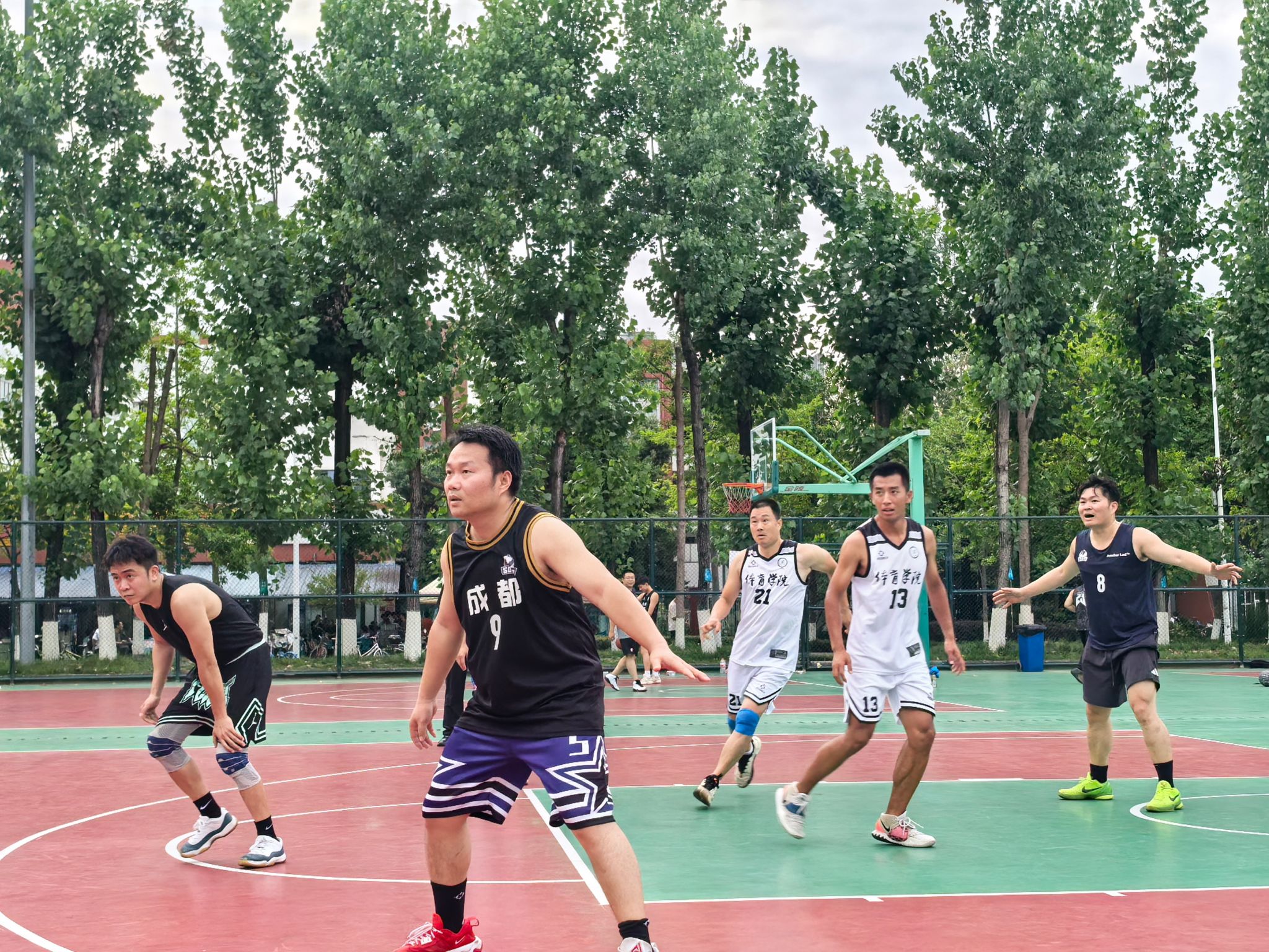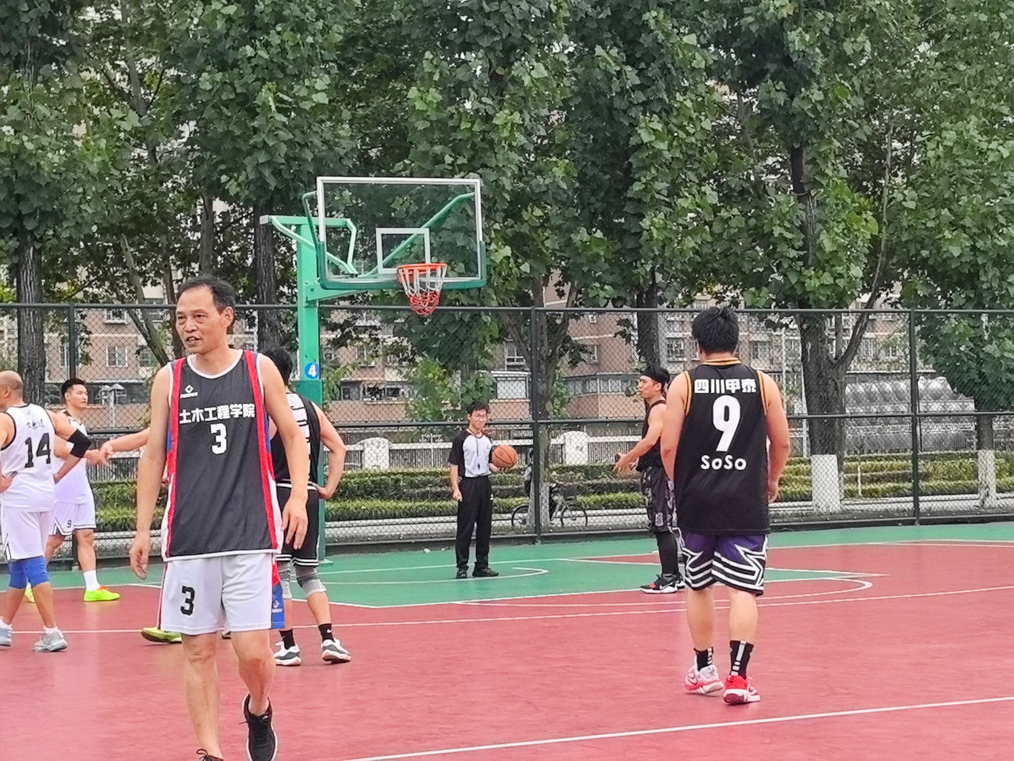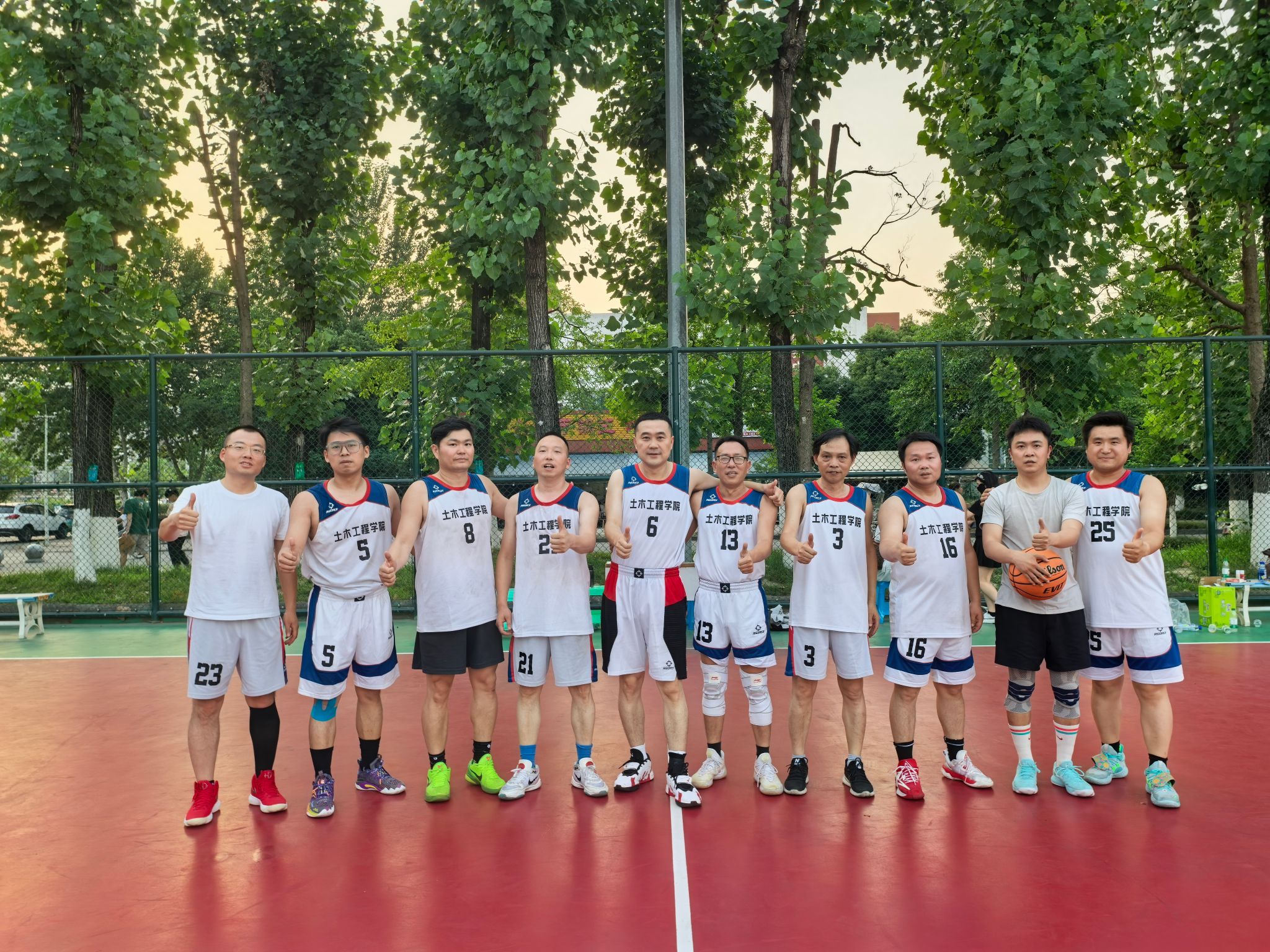小组赛阶段,土木学院教职工队便将团队协作展现得淋漓尽致。训练时,领队石莹与教练陈远久会根据每位队员的特点,反复打磨战术配合,从挡拆掩护到无球跑动,每个环节都经过精心设计。比赛中,队员们凭借高度的默契,将战术执行到极致。面对对手的严防死守,他们没有单打独斗,而是通过不断地传球拉扯防线。后卫严涛精准的长传找到篮下空位的中锋严猛,后者轻松上篮得分;或是前锋陈昭吸引包夹后,及时分球给外线手感火热的崔凯、刘江,完成一记漂亮的投射。正是这种无私的分享球与紧密配合,让他们以小组赛全胜战绩昂首晋级。