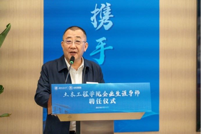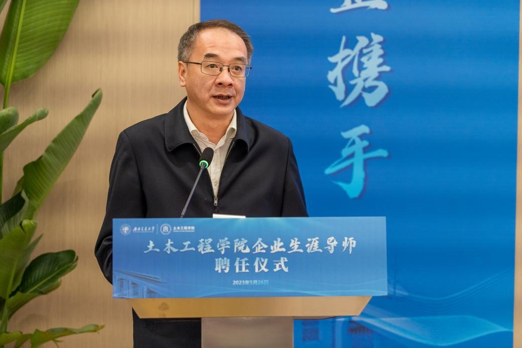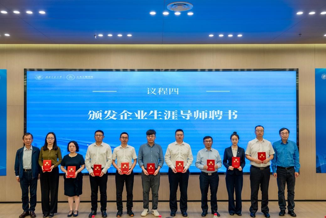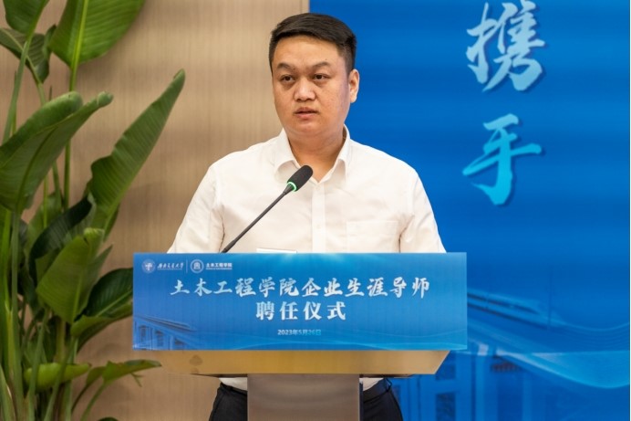 聘任仪式上,太阳成tyc234cc党委副书记周曦针对企业生涯导师工作背景及目的、开展情况以及相关优秀做法进行了简要介绍。太阳成tyc234cc为进一步引导学生主动对接“一带一路”倡议、交通强国等国家战略,促进学生更高质量、更加充分就业,常态化开展企业生涯导师聘任工作,为每个本科生班级配备2名企业生涯导师。导师遴选主要面向建筑施工单位、设计单位、投资单位、事业单位、土木工程领域相关单位的优秀青年骨干开展。导师工作任务涵盖“五个一”计划,即每学年在所负责班级开展一次主题教育、一次就业指导活动、一次工程实践、一次谈心谈话、一次主题班会。