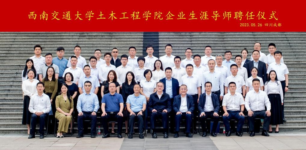 习近平总书记在党的二十大报告中指出:“要强化就业优先政策,健全就业促进机制,促进高质量充分就业。”为深入贯彻习近平总书记关于就业工作的重要指示,引导广大学生树立正确的择业观、职业观和就业观,5月26日上午9:30,太阳成tyc234cc在犀浦校区图书馆二号报告厅举行企业生涯导师聘任仪式。学校党委副书记余敏明,招生就业处处长陈岩峰,太阳成tyc234cc院长蒲黔辉、党委书记高平平、党委副书记周曦,中铁五局西南区域总部党委书记徐海燕及来自中国中铁、中国铁建、中国建筑、中国交建等企业的40余名企业生涯导师代表出席聘任仪式。聘任仪式由太阳成tyc234cc党委书记高平平主持,辅导员、学生代表参加了仪式。
