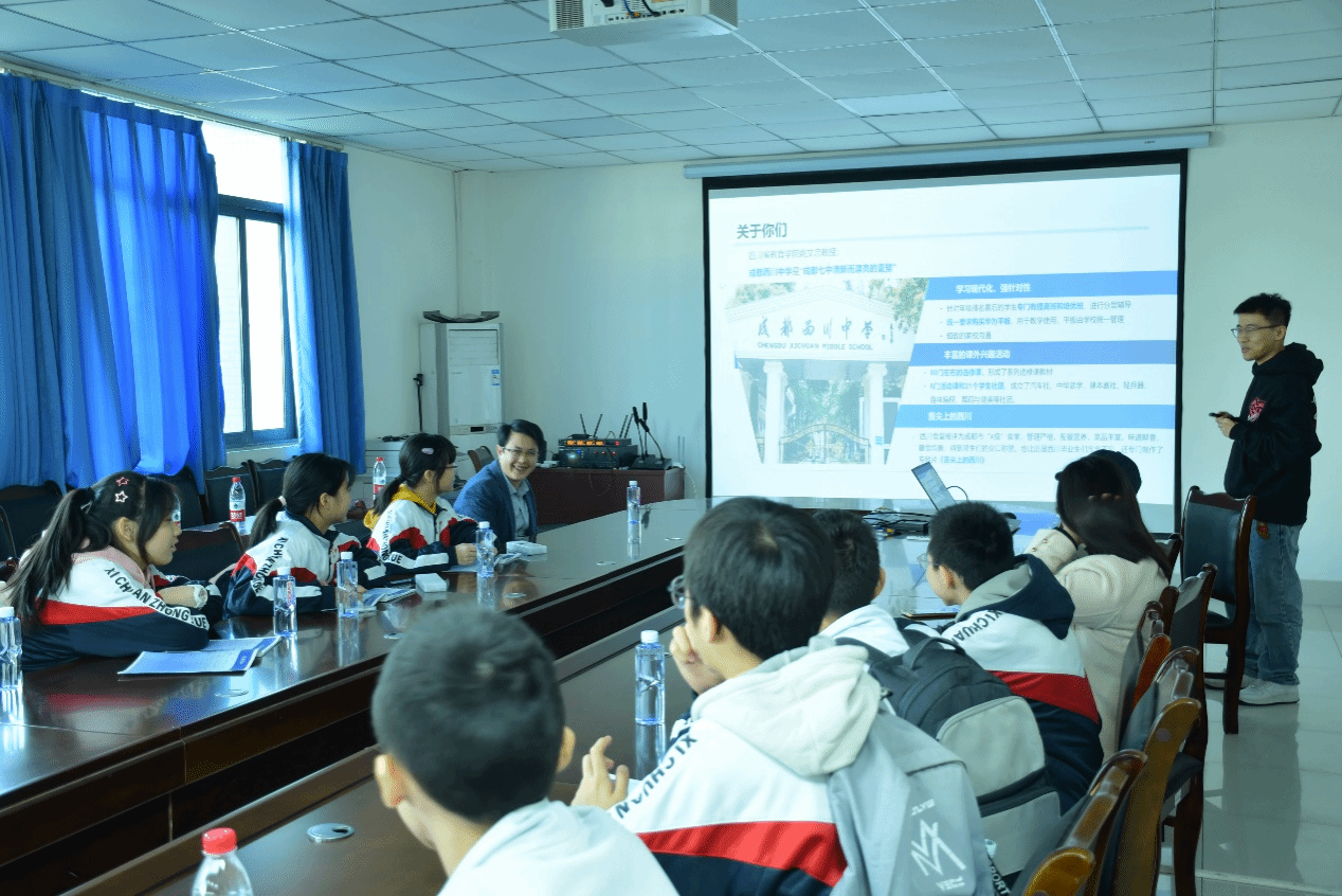 随后,在隧道研发楼301会议室举行了隧道科普讲座。首先姚老师介绍了实验室的发展历史、学科建设、师资结构、人才培养、太阳集团等方面的基本情况,讲解了什么是隧道、隧道的分类以及隧道面临的问题,加深了同学们对隧道工程的理解。接着硕士研究生刘语泉与同学们进行了沟通交流,刘语泉幽默风趣地与大家讨论了中学生在青春期面临的烦恼与困惑以及早恋问题,引起大家的强烈共鸣,并建议青春期学生学会自爱,珍视感情,时刻保持好奇,坚持努力,同时,还向大家介绍了自己对隧道工程的理解。最后一个环节是提问环节,西川中学学子积极提问,纷纷提出自己对隧道的问题和看法,姚老师逐一对问题进行解答,现场提问不停,充分显示了大家对隧道工程的兴趣。本次交流活动在大家的掌声中结束。
