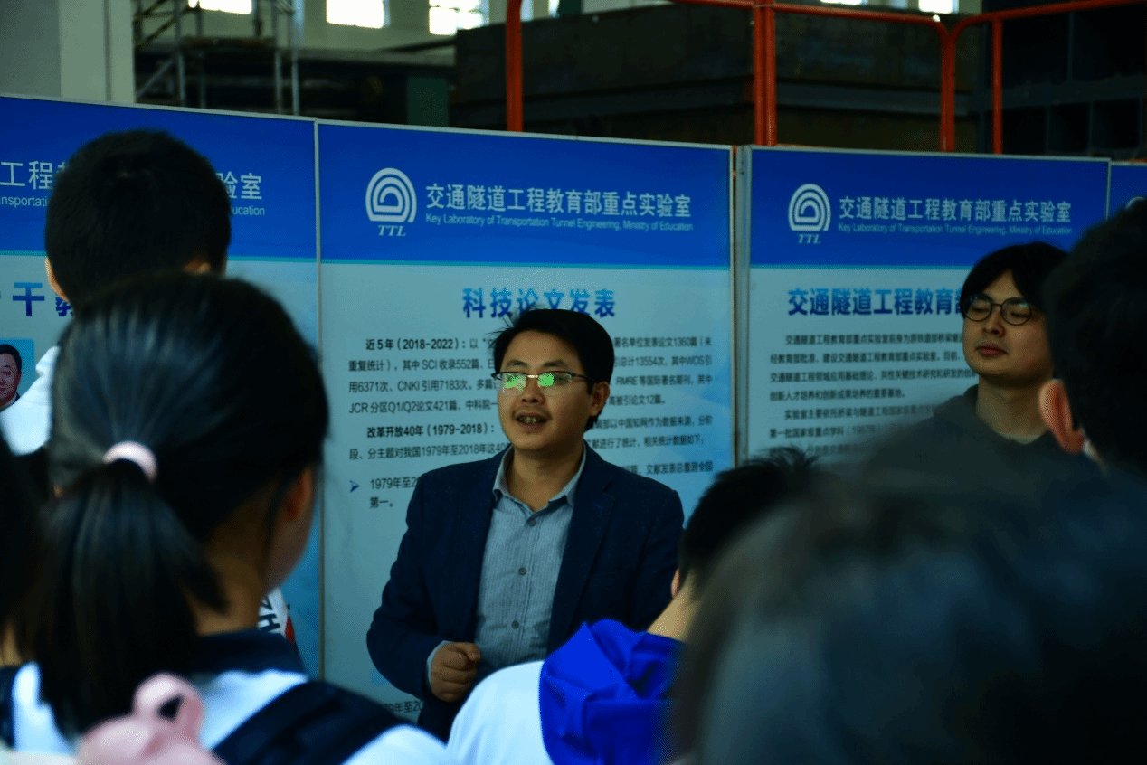 2023年11月16日下午,成都市西川中学师生走进太阳集团tyc234cc交通隧道工程教育部重点实验室,进行为期半天的参观交流。地下工程系姚超凡老师,硕士研究生张逸飞、刘语泉代表交通隧道工程教育部实验室出席了本次活动。本次参观活动主要分为实验室设备参观和科普讲座两部分。此次活动让西川中学的同学们近距离了解隧道工程的魅力,也增进了同学对对隧道工程专业的认识。