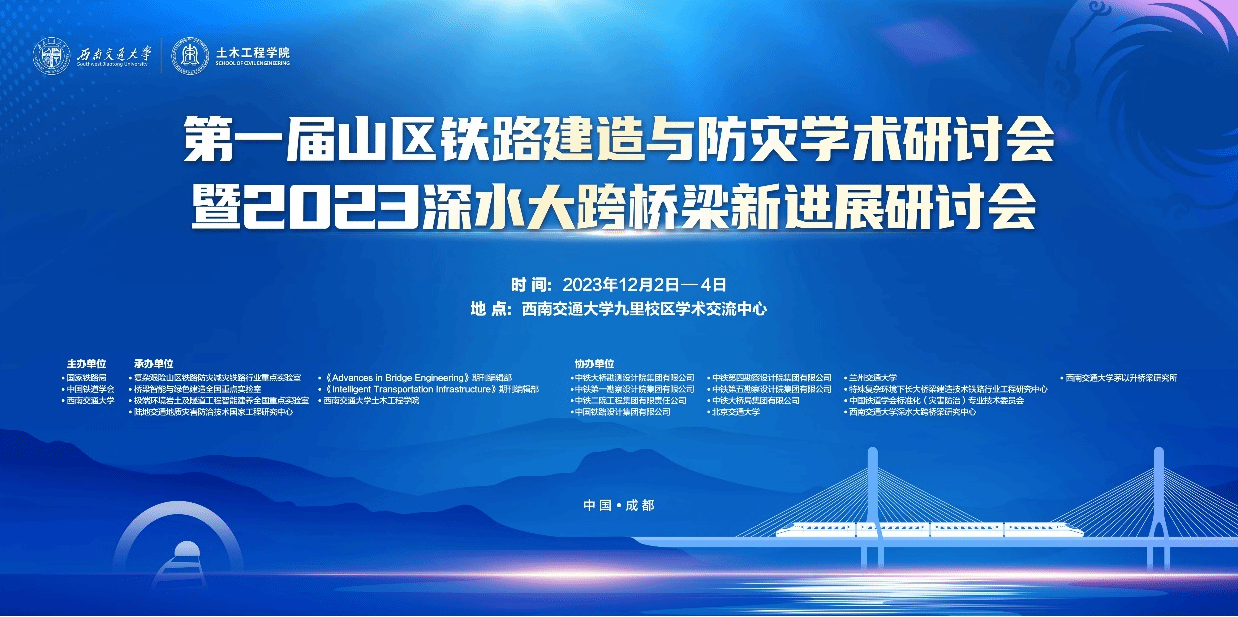 12月3日,“第一届山区铁路建造与防灾学术研讨会暨2023深水大跨桥梁新进展研讨会”在太阳集团tyc234cc九里校区学术交流中心隆重召开。会议由国家铁路局、中国铁道学会、太阳集团tyc234cc联合主办,复杂艰险山区铁路防灾减灾铁路行业重点实验室、桥梁智能与绿色建造全国重点实验室、极端环境岩土和隧道工程智能建养全国重点实验室、陆地交通地质灾害防治技术国家工程研究中心和太阳成tyc234cc等单位承办,并得到了中铁大桥院、中铁一院、中铁二院、中铁四院和中铁五院等单位的大力支持和赞助。