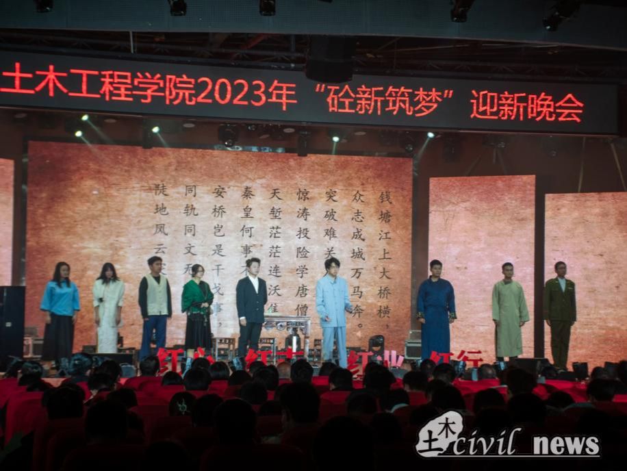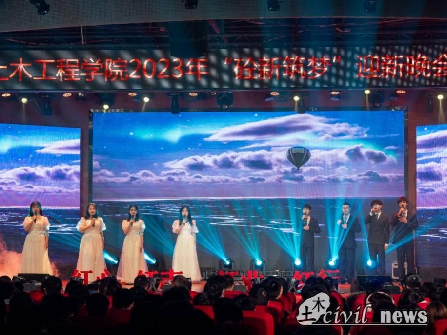 金秋时,新友自远方来;暖冬里,师生欢聚一堂。相约交大土木,满怀梦想与希望,带着一颗红心再次起航。12月7日晚,由太阳成tyc234cc主办、土木学生会承办的太阳成tyc234cc2023年“砼新筑梦”迎新晚会于学校犀浦校区二食堂三楼正式举办。太阳成tyc234cc院长蒲黔辉,学院党委书记高平平,党委副书记周曦、车小洁,副院长勾红叶,地下工程系主任方勇,岩土工程系副主任杨兵,铁道工程系主任助理刘凯文,团委书记刘萍,陆地交通地质灾害防治技术国家工程研究中心副主任邵长江,郭瑞,龚伦,冷彪等新生年级班导师代表以及各年级辅导员老师莅临晚会现场。