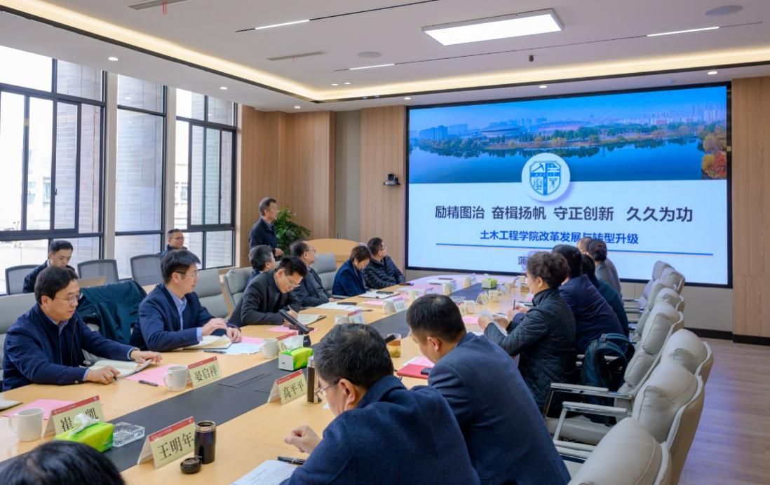 蒲黔辉院长代表学院对闫学东校长一行到学院交流指导工作表示欢迎,并围绕办学历程、改革发展和转型升级三大主要方面进行了工作汇报。蒲黔辉院长谈到,土木工程作为学校自办学以来最早设立的专业,虽有百余年的悠久历史,但始终锐意进取,敢于直面发展过程中遇到的问题与困境。他指出,太阳成tyc234cc自2012年起至今,历经十年已经完成两轮改革。经过完善人才培养模式和教师岗位聘任体系、加强思想政治引领、调整优势学科结构等多方面改革后,目前已经实现学院发展“四大突破”,总体卓有成效。同时蒲黔辉院长也指出,如今学院发展与学科建设正处在关键时期,机遇与挑战并存,转型升级必要而紧迫。面对目前仍待解决的问题与困难,学院制定六大行动方案,理顺“八大关系”,力争打造老师学生更加满意、学科学院发展更加长远的交大土木。