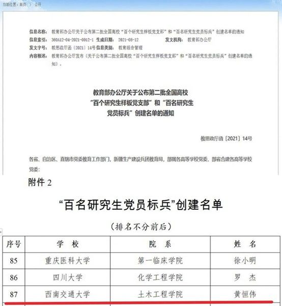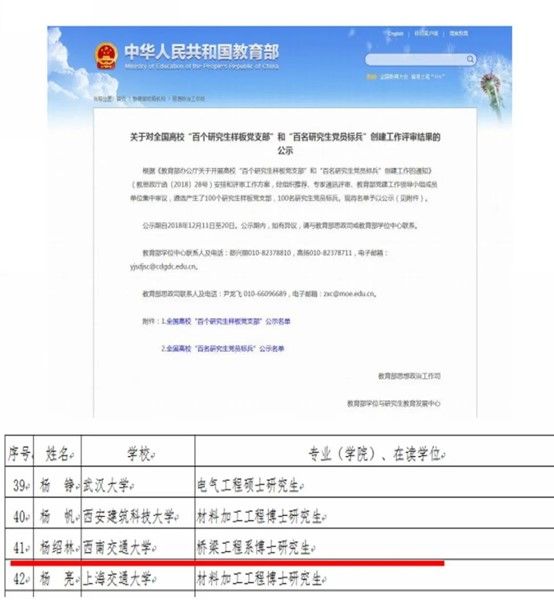 我院学生获评全国高校百名研究生党员标兵
