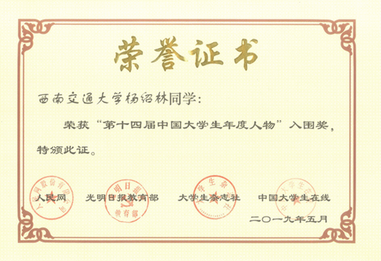 我院学生获“中国大学生年度人物”入围奖