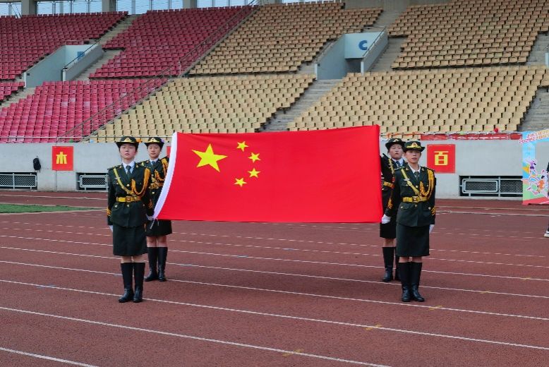 随后,现场全员肃立,旗手高举鲜艳的五星红旗,学院师生共同唱响中华人民共和国国歌,目光坚定庄严,歌声激昂有力。在歌声中,现场师生的内心都注入了一股坚定而澎湃的力量。