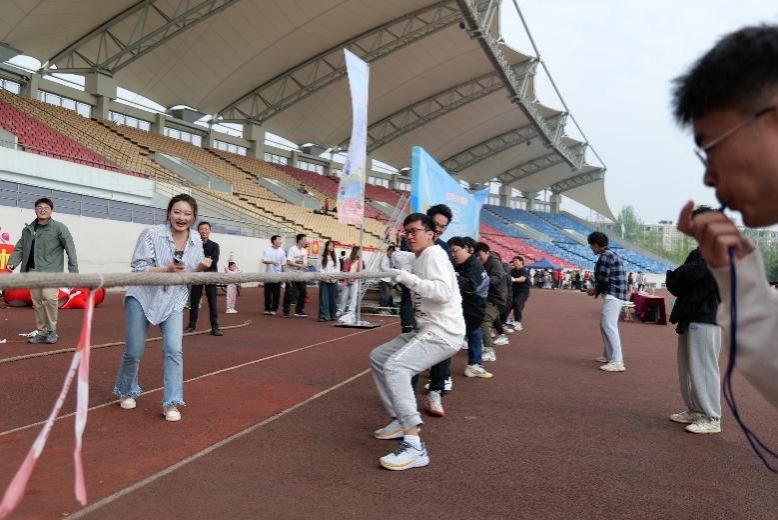 拔河赛的辅导员阵容vs大四同学队伍,究竟花落谁家?“要均匀用力,重心向后。”经过内部选拔,辅导员老师们派出了一支“智”+“力”满满的队伍,与学生组冠军土木2020-10班级队进行师生拔河友谊赛。在加油声与欢笑声中,辅导员老师队取得胜利,师生一同合影,在毕业前夕留下宝贵的纪念。