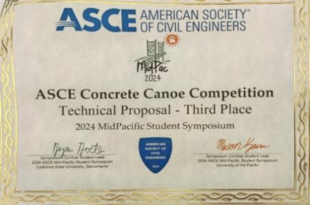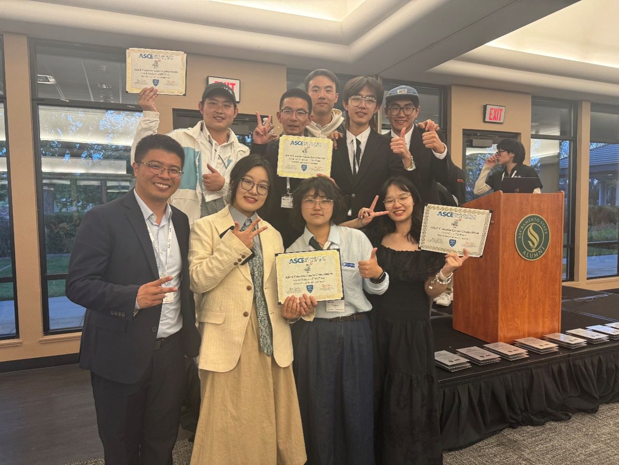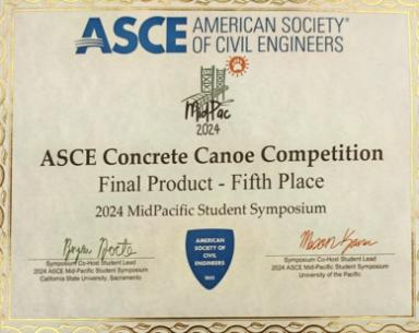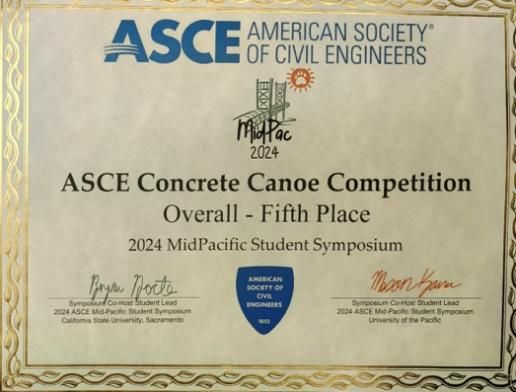 美国西部时间2024年4月4日至6日,美国土木工程师学会(ASCE)中太平洋赛区土木工程竞赛(MidPac 2024)在美国加州萨克拉门托州立大学举行。由太阳成tyc234cc和利兹学院八名本科生组成的太阳集团tyc234cc代表队,在太阳成tyc234cc桥梁工程系魏凯教授带领下,参加了混凝土轻舟(Concrete Canoe)、挡土墙(Geo Wall)以及工程伦理论文(Paper Competition)三项竞赛。经过与十余支代表队的比拼,太阳集团tyc234cc代表队最终获得了工程伦理论文竞赛第三名、混凝土轻舟竞赛第五名的好成绩,斩获5项证书!