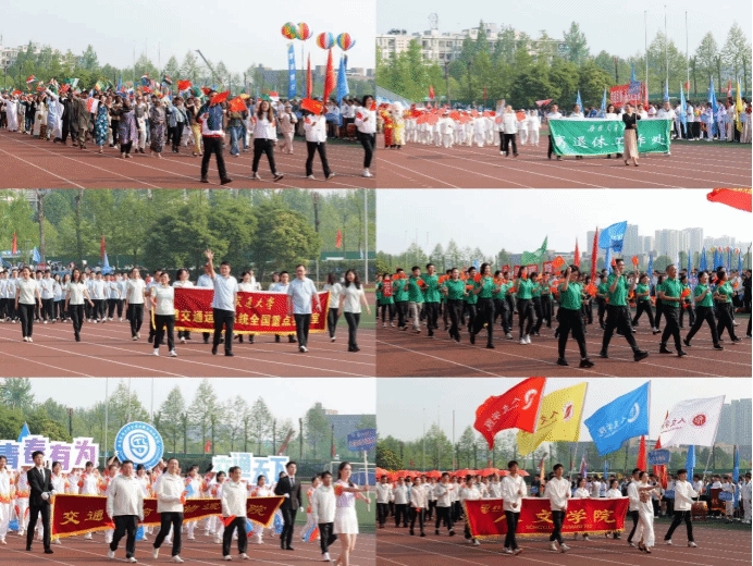 接下来,以学院为单位的各参赛方阵进入主场。太阳成tyc234cc师生方阵一马当先,迎着朝阳向前方走来。最引人注目的是漆成灰色的轨道模型,以及方阵两侧的高铁展示牌,牌上写着的是同学们齐声高喊的口号——“百年土木,中流砥柱,贯通山河,交通天下”。同学们铿锵有力的声音代表土木人会用实际行动践行口号,真正做到肩扛起“轨道”、手持稳“高铁”。