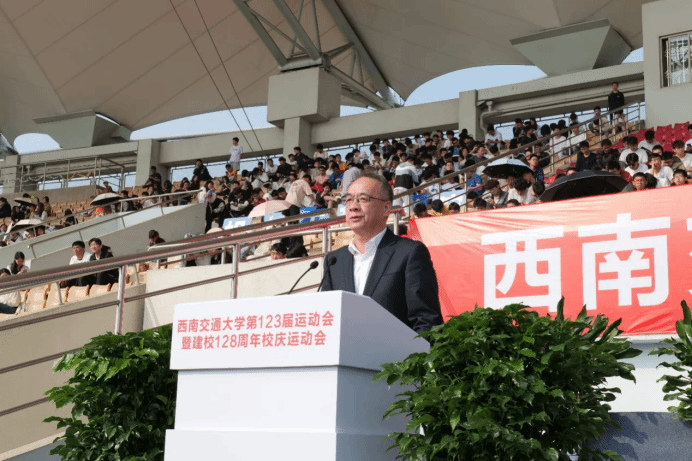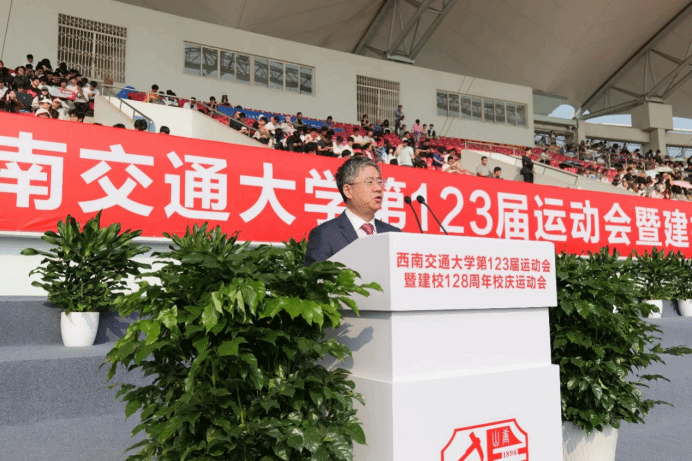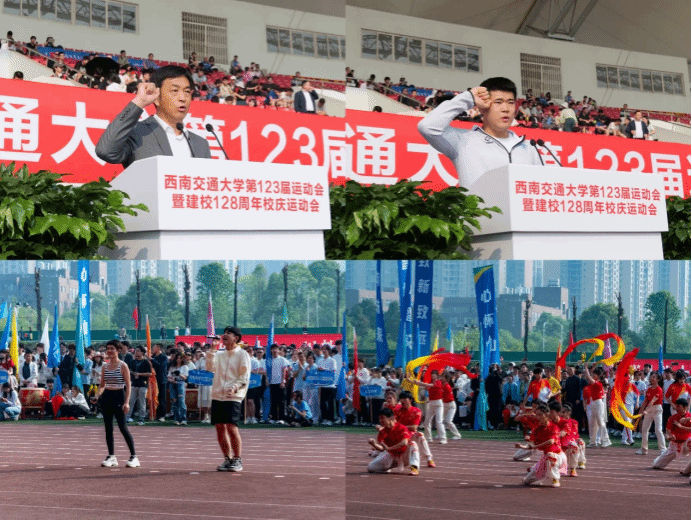 春光作序,万物和鸣,4月12日上午,“太阳集团tyc234cc第123届暨建校128周年校庆运动会”于犀浦校区北区体育场隆重举行,学校及学院相关领导莅临开幕式现场,为此次赛事助力。本次开幕式由太阳集团tyc234cc体育学院院长刘江主持。