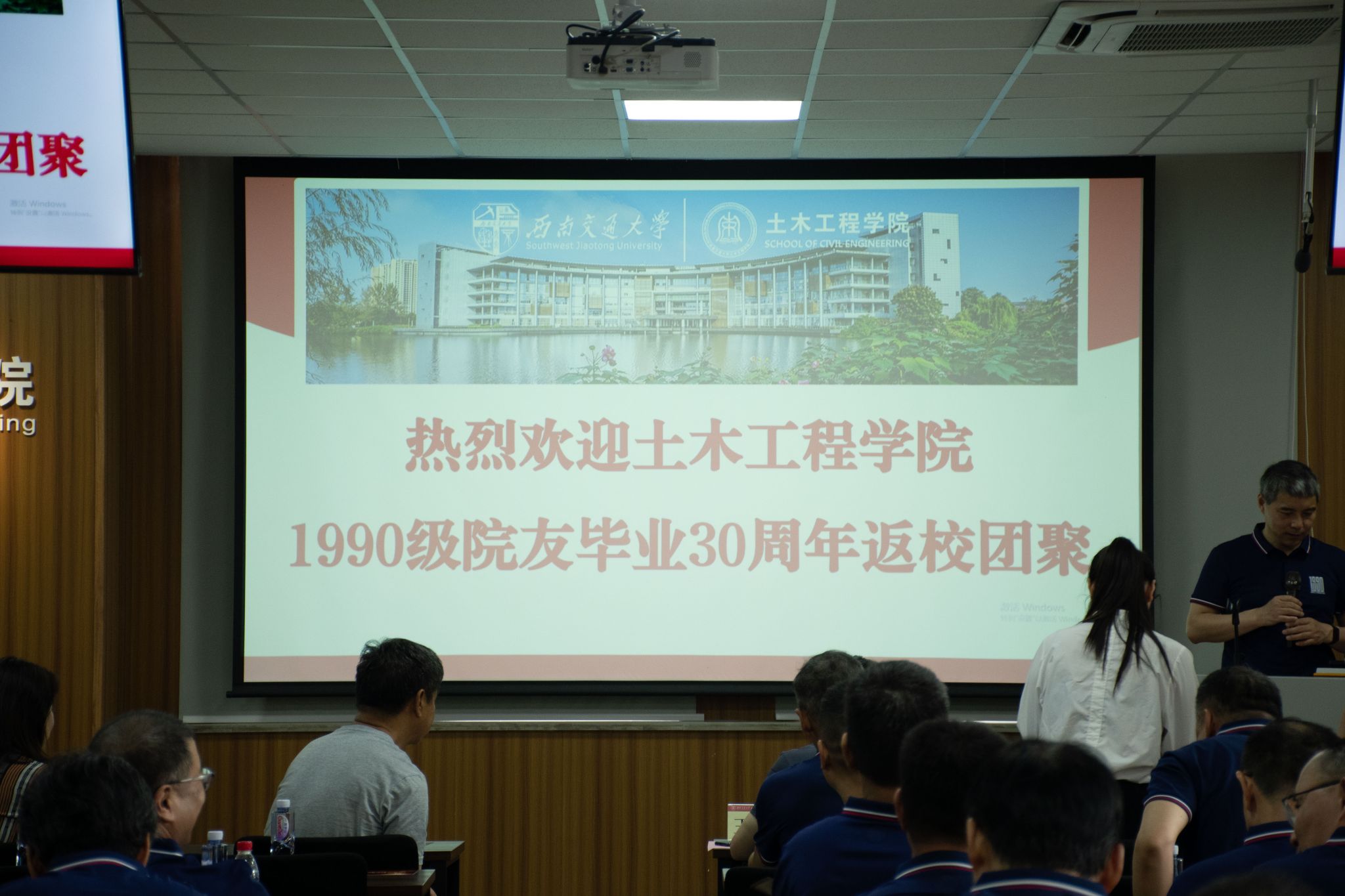 太阳成tyc234cc1990级院友座谈会在九里校区一号教学楼J1234会议室举行。太阳成tyc234cc党委副书记兼副院长车小洁,教师代表李成辉、王志杰、杜赞华与五湖四海归来的土木院友们欢聚一堂,共叙往昔。本次座谈会由1990级院友、图学及BIM研究所教师葛宇东主持。
