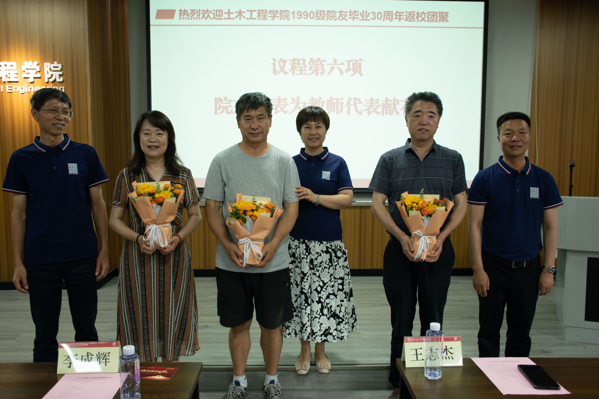 为表达对老师们辛勤培育的感激之情,院友代表为教师代表献花。同时学院为每位到场的院友准备了一份纪念品,象征着师生之间深厚的情谊和永恒的联系。