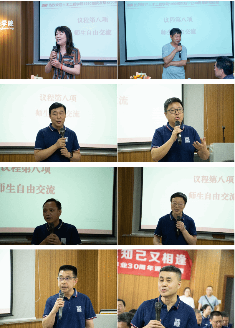 在师生自由交流环节,来自不同专业的院友们也踊跃分享各自行业的发展经历,交流了自己的人生感悟。大家畅叙同窗情谊,共忆青春,感慨于母校的变化,也感恩母校的悉心培养。岁月流逝,阅历的沉淀让人生的河道渐渐变宽,趋于平静疏阔。在这个变化的时代,西南交大“竢实扬华、自强不息”的精神却始终不变,土木学院“百年土木、树人百年”的口号仍历久弥新。
