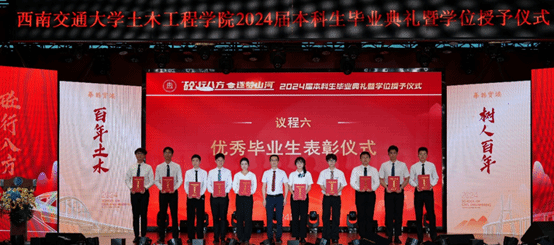 周曦副书记宣读《太阳成tyc234cc2024届优秀本科毕业生表彰决定》,并为优秀毕业生代表颁发证书。37名本科生获“四川省优秀大学毕业生”荣誉称号、93名本科生获“太阳集团tyc234cc优秀毕业生”荣誉称号。