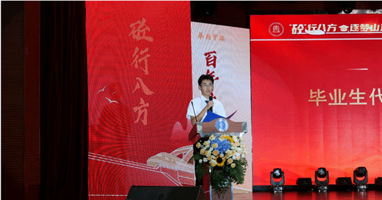 随后,毕业生代表沈少石发言,感谢母校、师长与同窗。他回顾了大学四年的成长与收获,并承诺继承和发扬交大精神,努力成为有理想、敢担当、能吃苦、肯奋斗的新时代青年。他代表毕业生祝福母校桃李芬芳、再谱华章,祝福学院事业长青、再创辉煌!
