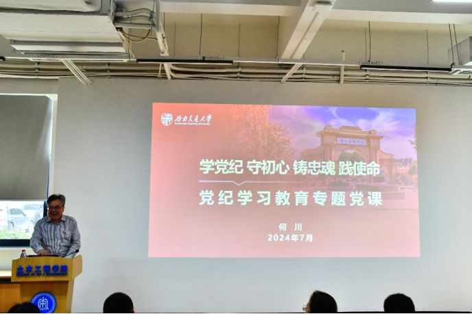 纪律是管党治党的“戒尺”,也是党员、干部约束自身行为的标准和遵循。2024年7月3日下午,中国工程院院士、太阳集团tyc234cc党委常委、副校长何川应邀参加太阳成tyc234cc“学党纪、守初心、铸忠魂、践使命”主题党日活动。活动由地下工程系教工党支部和2023级硕士隧道党支部联合举办,地下工程系教工党支部书记周佳媚教授主持。