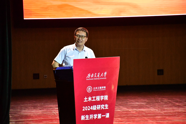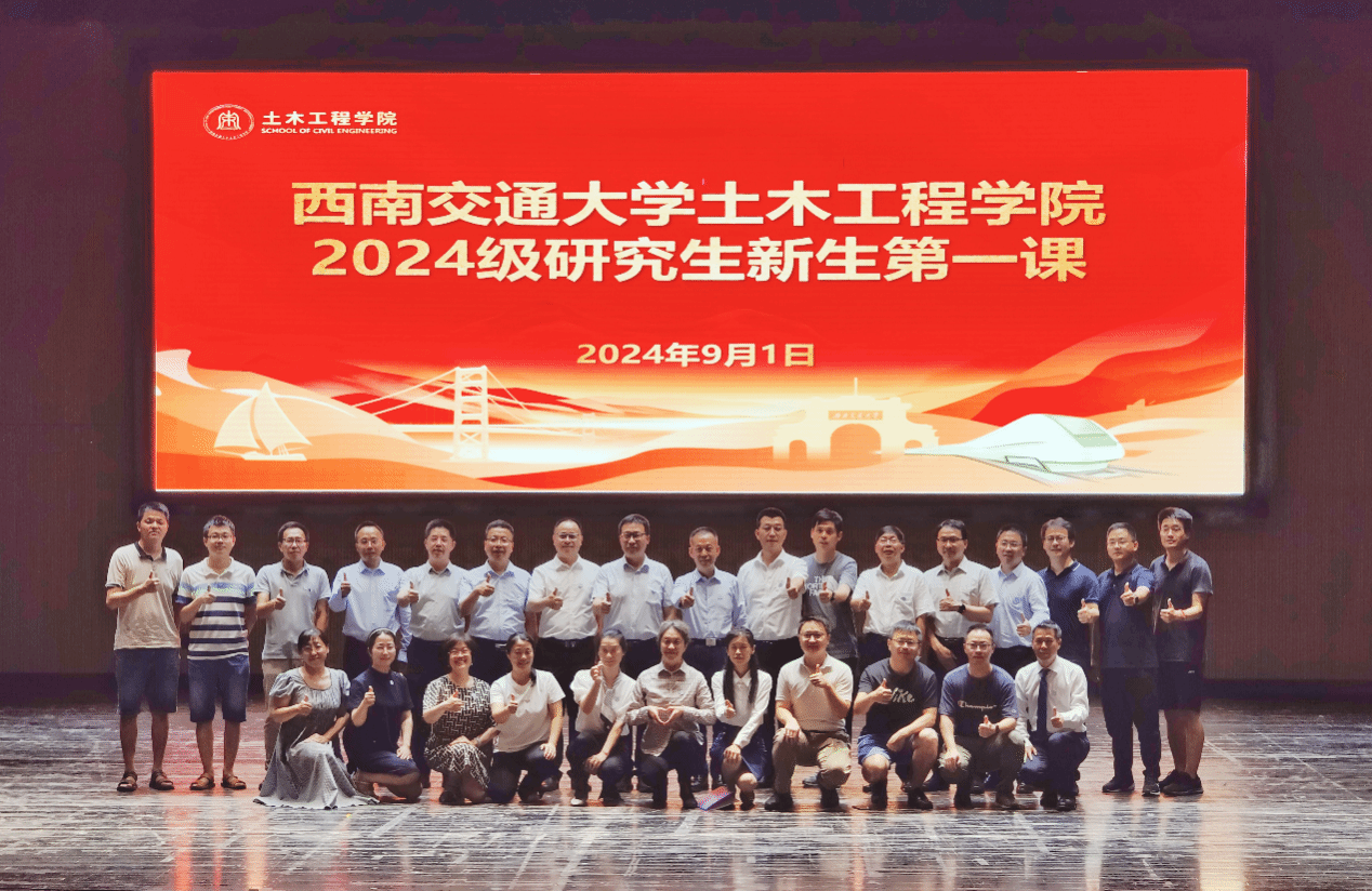 9月1日,太阳成tyc234cc在九里校区大学生会堂隆重举行了2024级研究生新生开学第一课,活动邀请武汉大学/华中科技大学郑俊杰教授担任主讲嘉宾。学院院长蒲黔辉,副院长富海鹰、王明年、陈嵘,党委副书记兼副院长车小洁,党委副书记刘萍,桥梁系教师徐腾飞、岩土系教师张俊云,各系室主任莅临出席;研究生导师代表和辅导员参会学习。