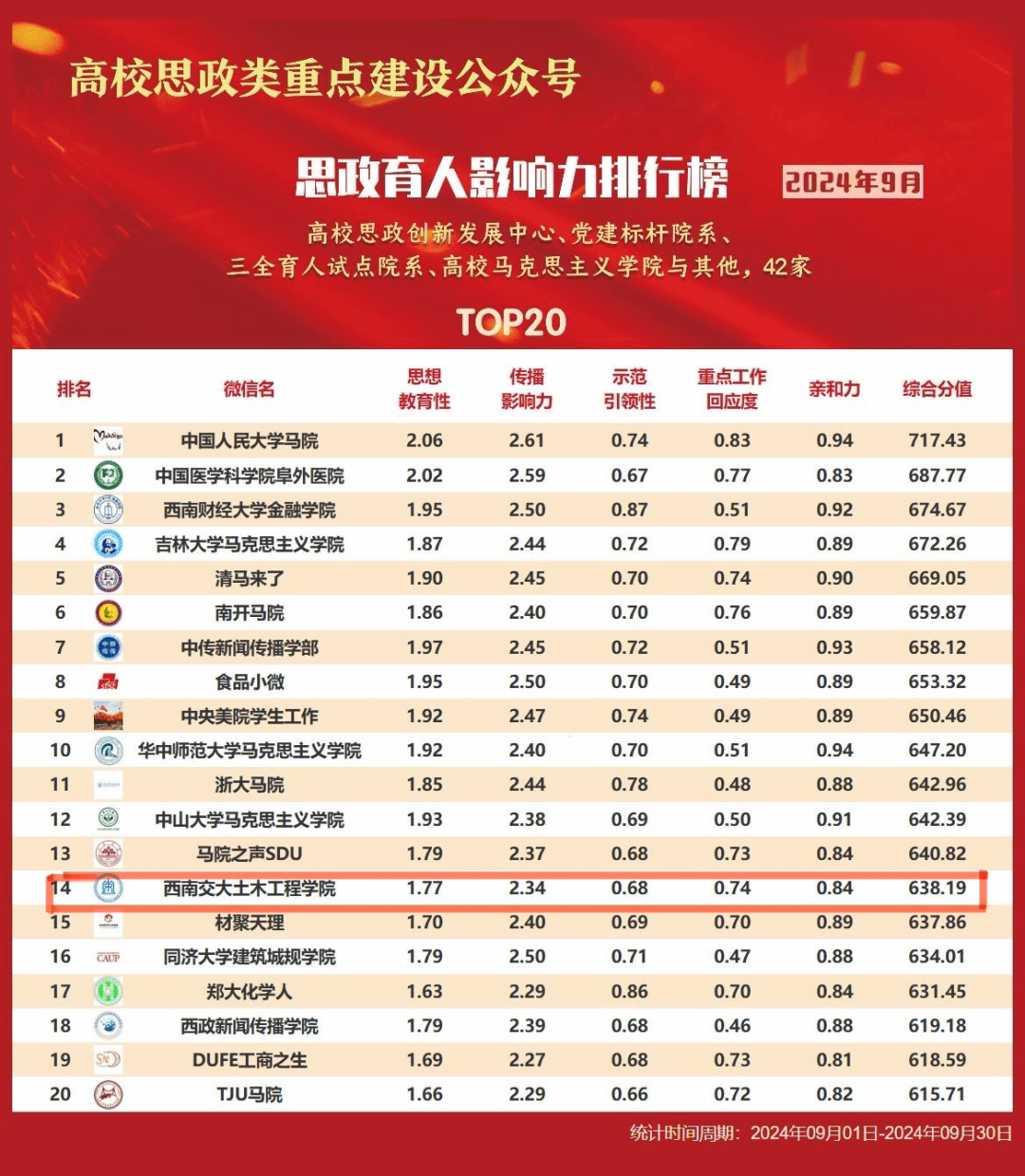 我院官微入选高校思政类重点建设公众号9月“思政育人影响力排行榜”榜单!