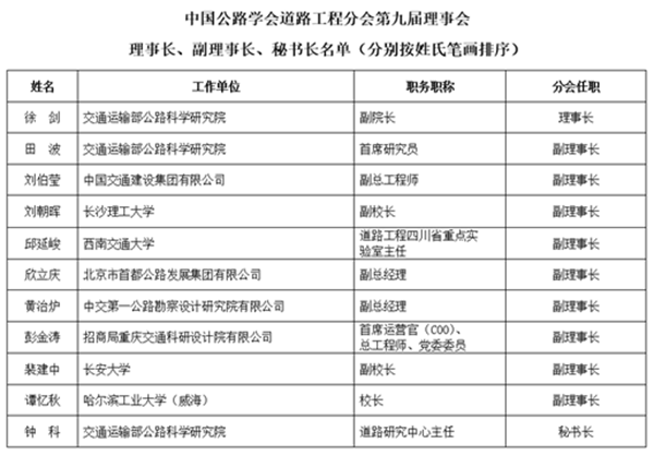 2024年10月22日,中国公路学会道路工程分会换届大会暨九届一次理事会在北京顺利召开。会议由中国公路学会副秘书长王大鹏同志主持,中国公路学会理事长(交通部原副部长)翁勇理同志、交通运输部公路太阳集团院领导等出席会议并作重要讲话,来之国内交通主管单位、建设单位、设计咨询单位以及科研院校等90余家理事单位,100余名理事参加了本次会议。我校道路工程四川省重点实验室主任邱延峻教授在换届大会中顺利当选为第九届理事会副理事长,我校艾长发教授当选为第九届理事会理事。