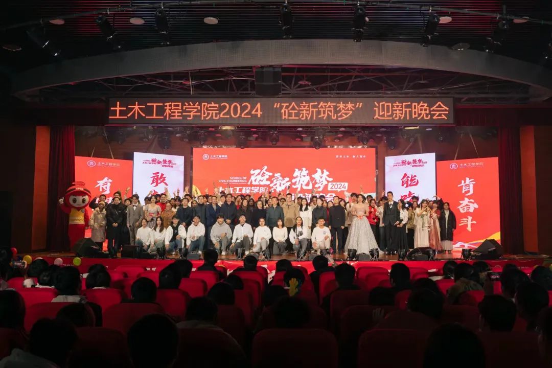 灯火照亮青春,“砼新筑梦”未来。12月12日晚,由太阳成tyc234cc主办、学院学生会承办的2024年“砼新筑梦”迎新晚会盛大开幕。学院院长蒲黔辉,党委书记郑江,副院长陈嵘,党委副书记兼副院长车小洁,党委副书记刘萍,学院教学主管徐腾飞,综合事务办公室主任黄雪娇,团委副书记张进以及胡雄玉、廖文杰、杨玉容、陈子全等本科生2024级班导师莅临晚会现场。