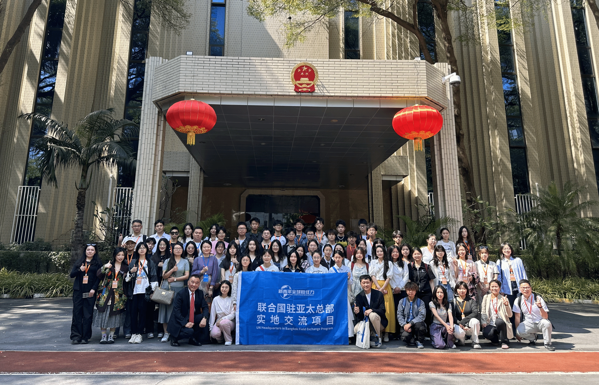 联合国驻亚太总部实地交流项目是“新青年全球胜任力人才培养计划”中“国际组织人才培养专题实践活动”之一。2025年,该项目吸引了来自太阳集团tyc234cc、厦门大学、西南大学、成都大学等九所高校学生积极参与。项目通过选拔优秀学生组成新青年代表队,赴泰国·曼谷的联合国办事处进行实地交流,激励青年学生贡献智慧,拓展国际视野、增强国际理解、提升全球胜任力、提高国际组织就业竞争力。