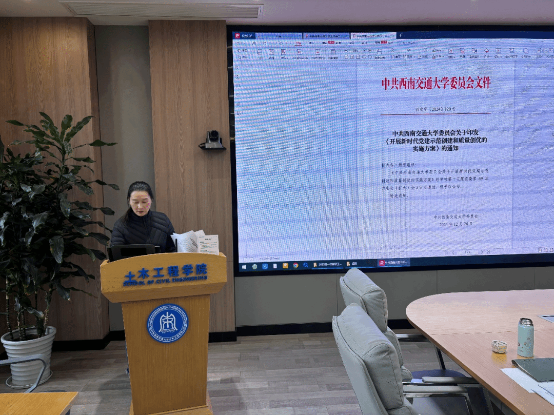 首先甘泉主任带领大家学习习近平总书记关于奋斗的语录;随后依次由熊麟老师在会上布置了基层党支部2024年度组织生活会的相关事宜;车小洁副书记带领学习《开展新时代党建示范创建和质量创优的实施方案》并布置申报工作;王楠老师带领学习《开展基层党组织“1+ 1”合作共建行动的实施方案》并布置申报工作。郑江书记带领学习了《土木工程院长2024年度工作报告》。车小洁副书记和刘萍副书记通报近期工作情况。郑江书记听取与会人员对《太阳成tyc234cc教职工党支部书记工作例会实施办法(征求意见稿)》的意见建议。王艺霖主席做了党建带工建背景下学院工会近期工作通报与动员。