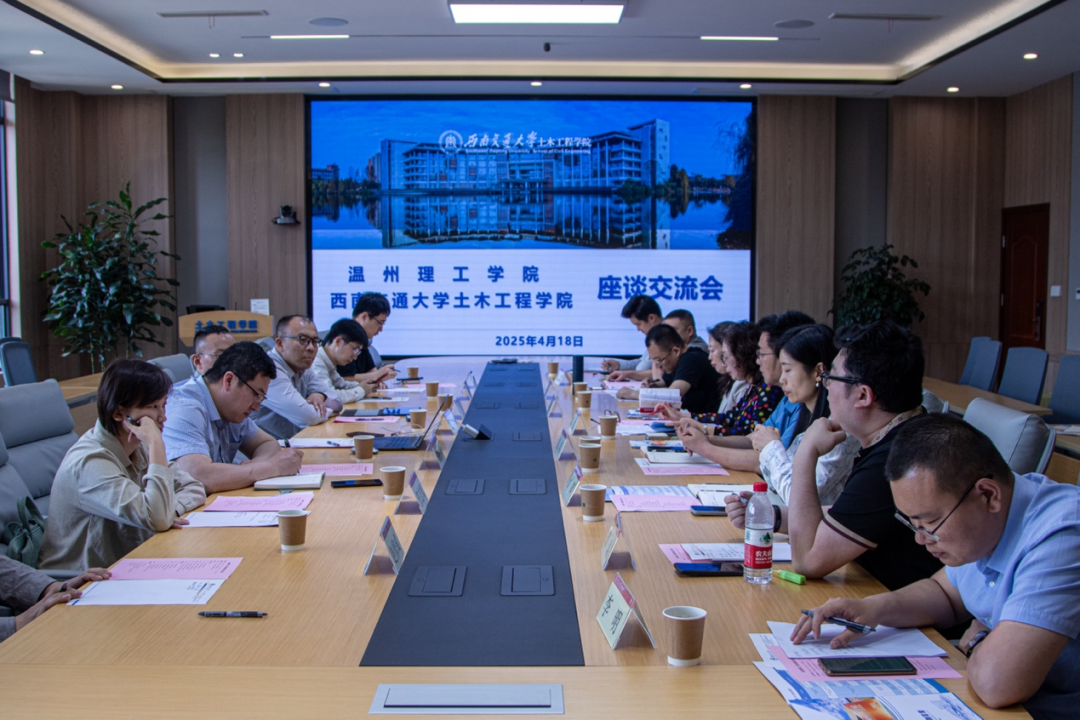 4月18日下午,温州理工学院副校长郑华,温州理工学院建筑与能源工程学院院长陈辉、党委书记陈忠浓等一行7人来访太阳成tyc234cc开展调研座谈。太阳成tyc234cc党委书记郑江、副院长陈嵘、党委副书记刘萍等出席此次交流。会议由党委副书记刘萍主持。