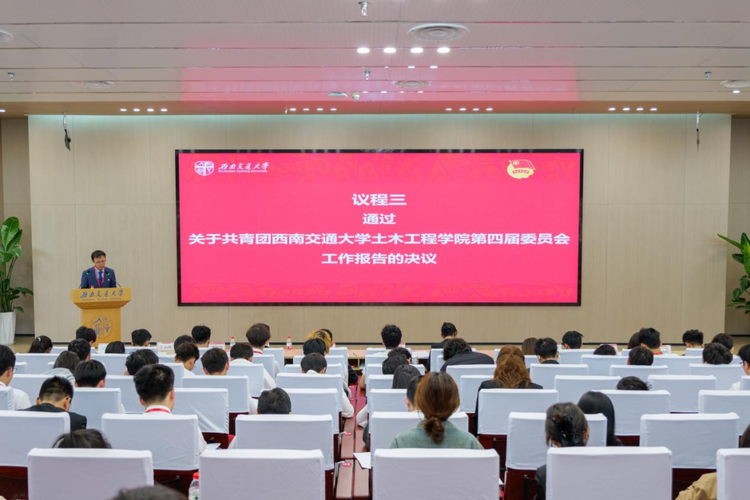 开幕式后,举行大会第一次全体会议,张进同志代表共青团太阳成tyc234cc第四届委员会作了题为“红土精神淬青春力量,实干担当绘土木华章 在习近平新时代中国特色社会主义思想指引下团结引领西南交大土木青年挺膺担当”的工作报告。报告全面、客观地总结了第四次代表大会以来的工作实效,对当前工作中存在的不足进行了分析与思考,进一步提出了未来工作的主要任务和前进方向。