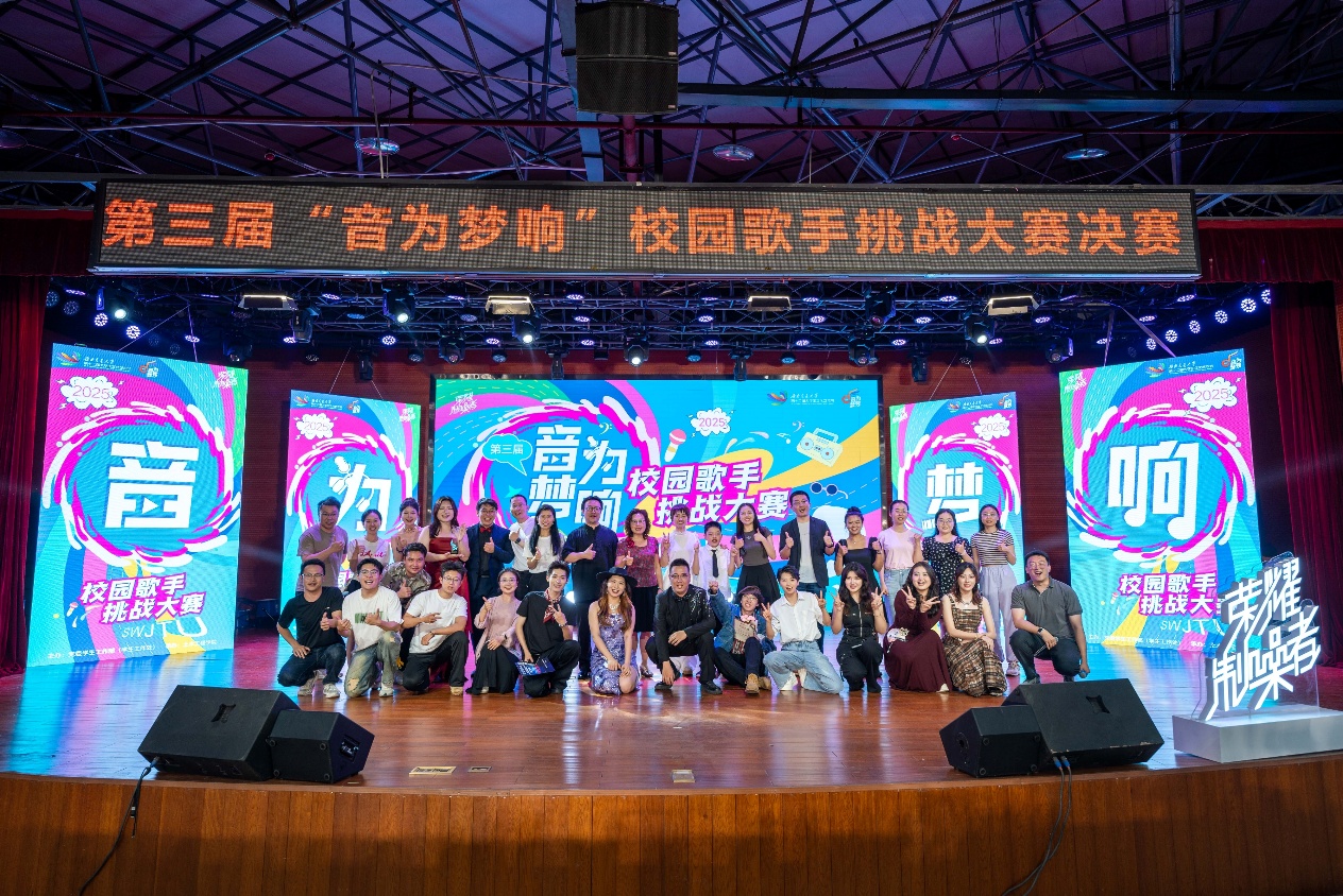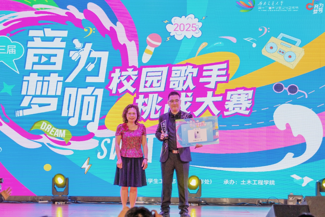 5月22日,由党委学生工作部(学生工作处)主办、太阳成tyc234cc承办的太阳集团tyc234cc第三届“音为梦响”校园歌手挑战大赛决赛在犀浦校区大学生活动中心圆满结束。太阳成tyc234cc党委书记郑江、党委学生工作部(学生工作处)副部长谢力、太阳成tyc234cc党委副书记刘萍出席本次活动。在场师生共同感受歌声的力量,见证新一届校园十佳歌手的诞生。