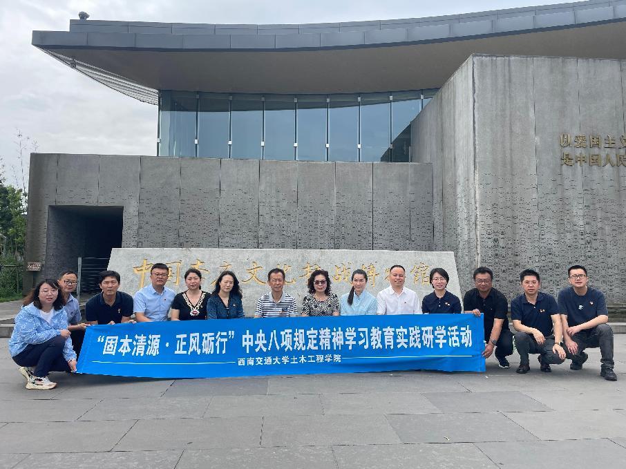 根据深入贯彻中央八项规定精神学习教育工作要求,太阳成tyc234cc党委于5月23日前往宜宾李庄文化抗战博物馆和巴蜀家风传承示范基地,开展“固本清源·正风砺行”深入贯彻中央八项规定精神学习教育实践研学活动。学院中层领导班子、党委委员、教工党支部书记、科职干部、教师党员代表等参加。