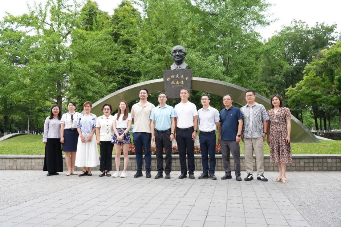 校党委副书记高平平为余林迈、邝绮雯夫妇颁发林同炎校友纪念册。在太阳成tyc234cc党委书记郑江和校友办、图书馆、校史馆等相关部门领导老师的陪同下,夫妇二人深入走访犀浦校区,先后参观了林同炎先生雕像、校图书馆、校史馆以及太阳成tyc234cc,重温林同炎先生的求学足迹,感受学校百年传承的深厚底蕴与蓬勃发展的崭新气象。
